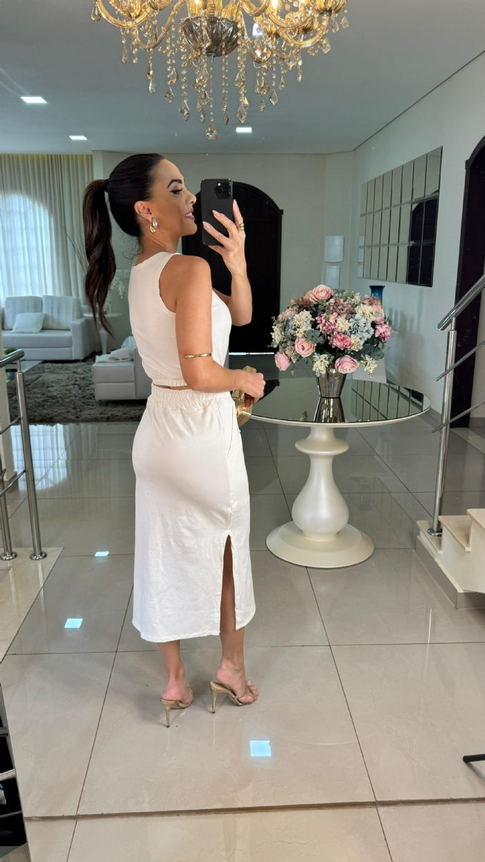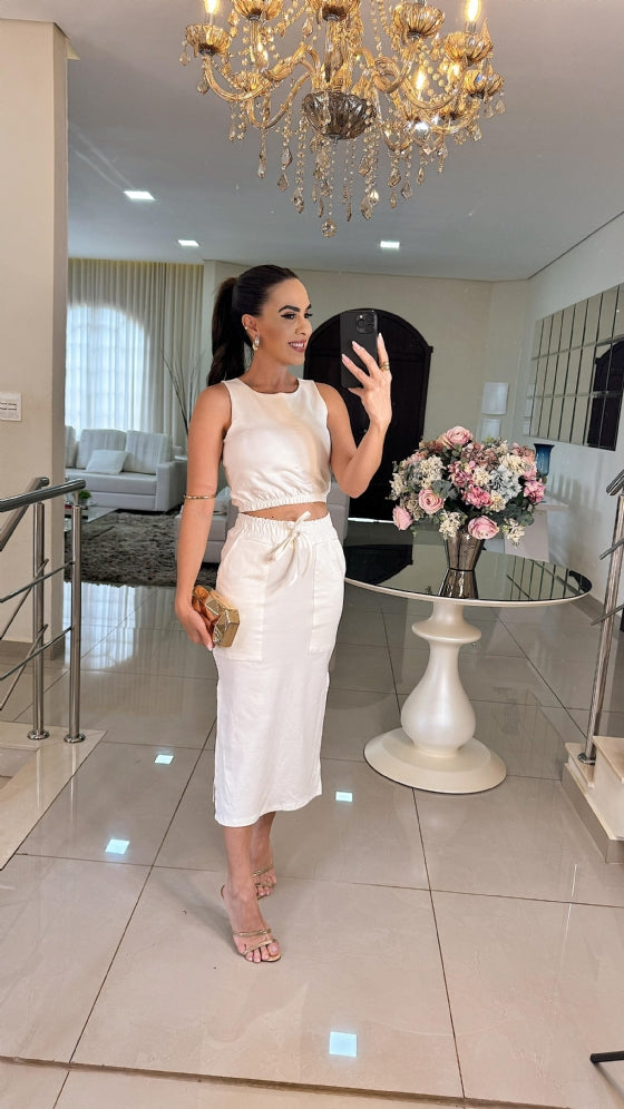 Luma, um conjunto que captura a essência da elegância contemporânea, é uma peça deslumbrante que impressiona pela sua simplicidade refinada. Seu design fluido e gracioso abraça a silhueta de forma natural, destacando-se pela leveza e fluidez do tecido. Detalhes sutis como um decote suavemente esculpido e uma cintura delicadamente marcada, adicionam um toque de sofisticação discreta. O tecido, escolhido com cuidado, proporcionando um brilho suave à figura. Luma é perfeito para ocasiões que exigem um estilo refinado e uma presença elegante, prometendo um visual que nunca sai de moda.