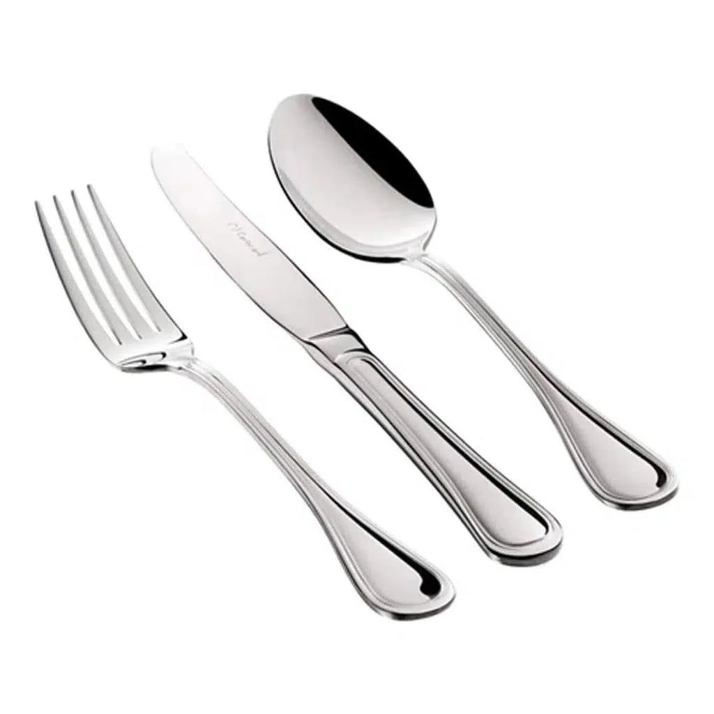 Produzido em aço inoxidável 18/10, com 4mm de espessura, as peças possuem design marcante e acabamento luxuoso, dando um toque a mais de classe e requinte à sua mesa. As facas possuem lâminas temperadas, que mantêm o corte por mais tempo e não causam riscos nas superfícies dos pratos, conservando-os.