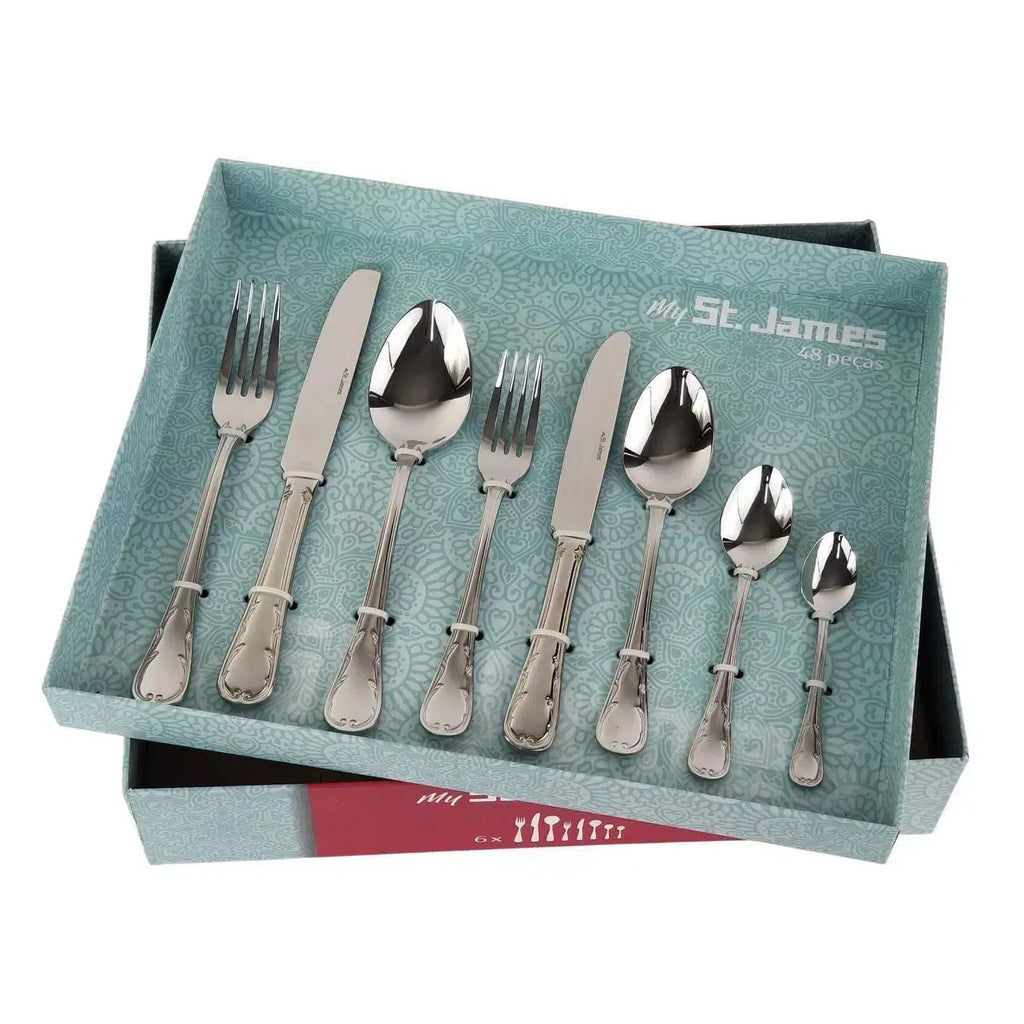 Ideal para encantar seus convidados e tornar suas refeições mais agradáveis e especiais, o Faqueiro St. James 48 Peças Royale em Aço Inox é uma combinação de design, resistência e qualidade.